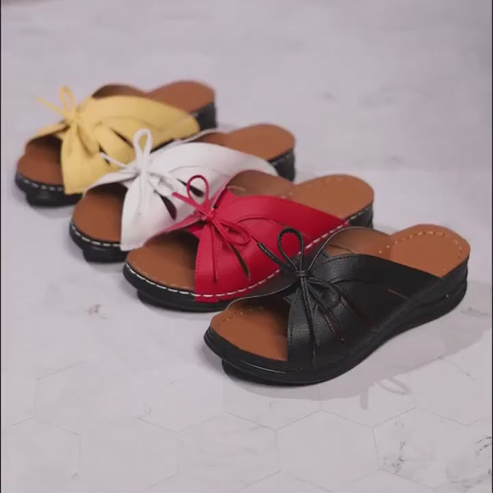 These slide sandals are more than just footwear, they're a feeling. Flutterby combines chic design with unmatched comfort, letting you conquer your day with confidence and grace. The charming bowtie detail adds a touch of whimsy, while the meticulously crafted footbed delivers supportive comfort that lasts. Slip into effortless style and experience the joy of every step with Flutterby.